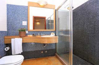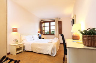 Superior Zimmer - 18 m2 – 2 Pers. | im Innenhof im Hochparterre |grosse Fenster mit Aussicht auf das Tal und auf den Pool | warme, antike, gespachtelte Zementböden | Bäder mit Mosaiken | separaten Eingang.