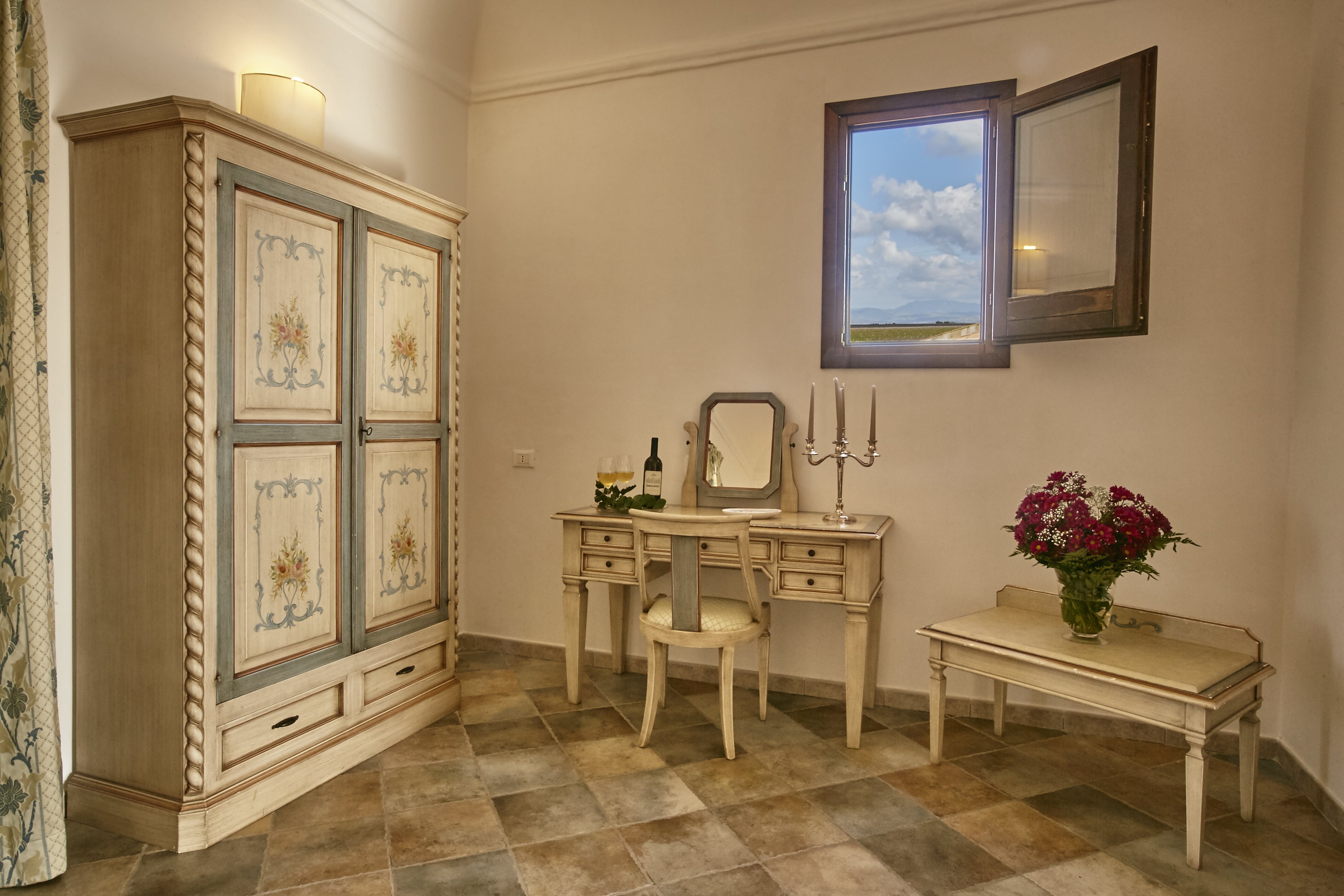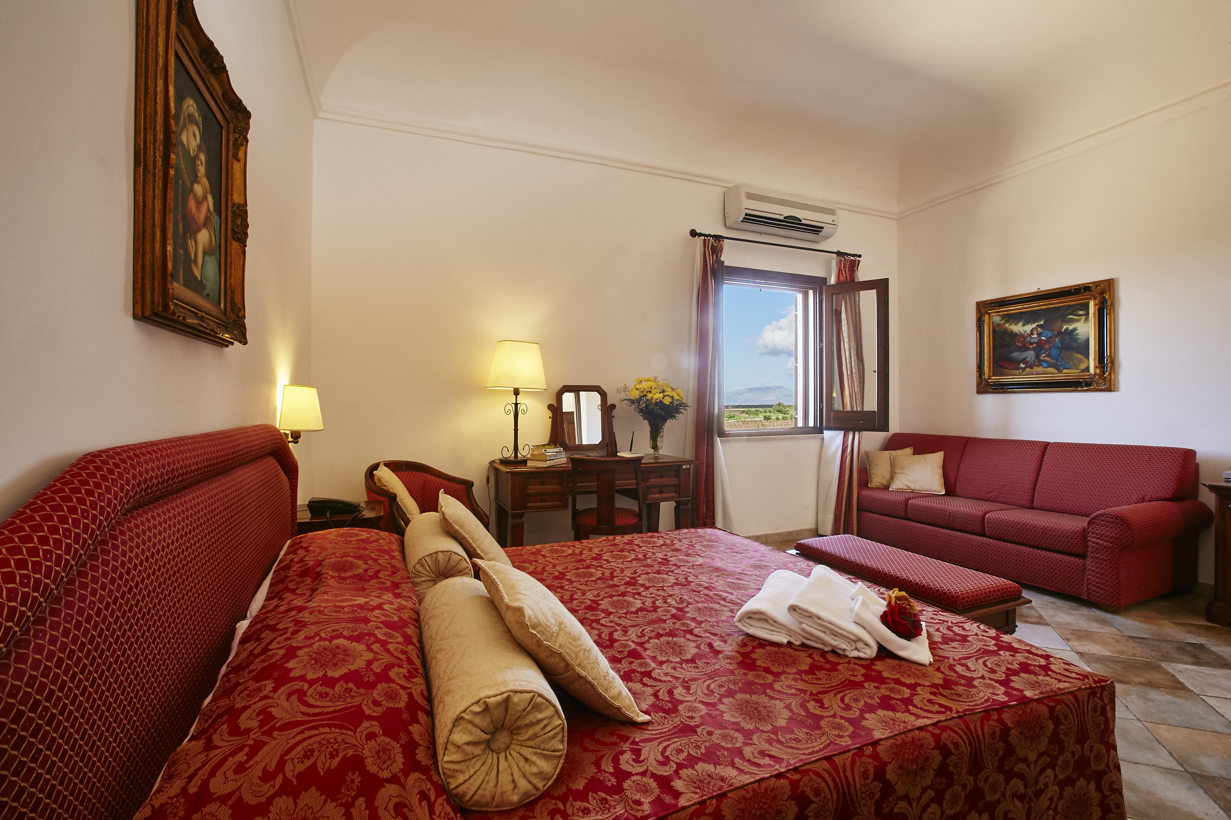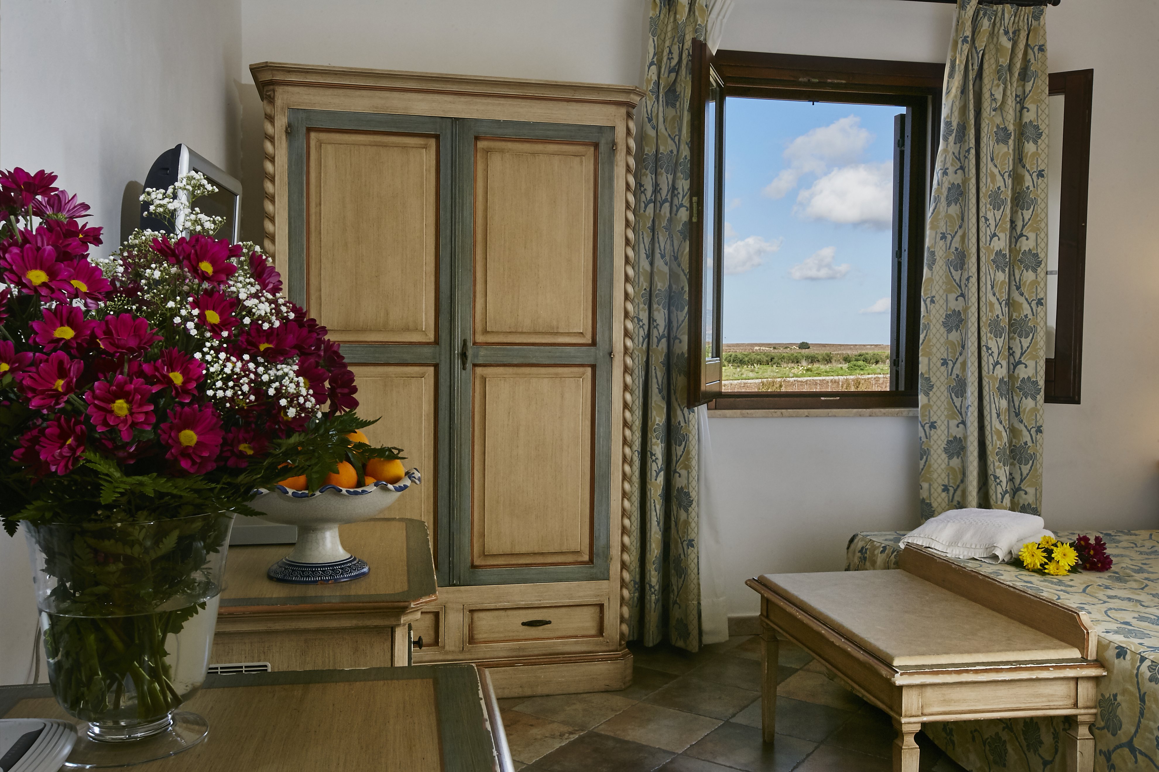 Deluxe im 1. Obergeschoss | Fenster mit Blick auf Weinreben und Landschaft | auch mit Terrasse und Blick auf Weinreben, der Lagune und Egadi-Inseln