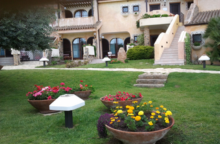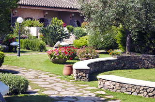 Panoramica Giardino - Blick auf den vor dem Restaurantbereich liegenden Garten | im Erdgeschoss mit einem eigenen kleinen Patio, oder in der oberen Etage mit einem Balkon |