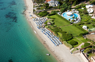 Strand hoteleigenen weissen, feinen Sandstrand | mit Sonnenschirmen und Liegestühlen ausgestattet