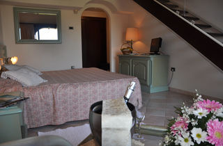 Superior Panoramica - obere Etage |grosse Terrasse ausgestattet mit Sonnenliegen |Blick auf die Lagune von Nora (Naturschutzgebiet) | Bad mit Whirlpoolwanne