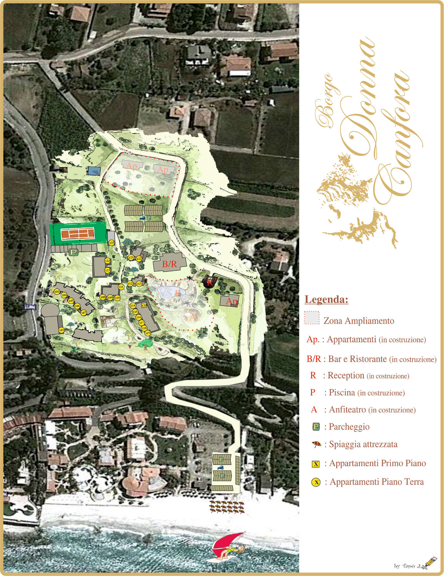 Nur 300m vom Meer entfernt liegt Borgo Donna Canfora in panoramareicher Lage. Eine richtige Oase mit wohnlichen und gepflegten Apartments in Reihenhäusern, umgeben von einer üppigen Grünanlage.
