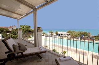 Zimmer 55 Zimmer | mit viel Liebe zum Detail eingerichtet | Standard – 20-23 m2 – im Erdgeschoss oder erste Etage, kleine Terrasse | Superior – 22-25 m2 – im Erdgeschoss oder erste Etage, Balkon mit seitl. Meerblick oder Terrasse mit Gartensicht | Junior Suite – 27-32 m2 – in der ersten Etage, Schlafzimmer und Aufenthaltsraum, Terrasse mit seitl. Meerblick | Junior Suite mit Pool und Meerblick | 35-38 m2 | in der ersten Etage | Schlafzimmer | Aufenthaltsraum | ausgestattete Privatterrasse | Master Suite - 42 m2 – im Erdgeschoss | Schlafzimmer | Aufenthaltsraum | Patio mit Privatpool