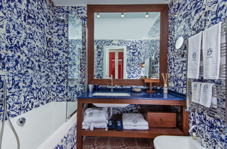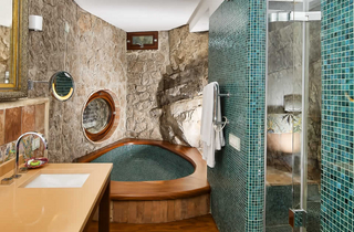 Zugang zum Strand | Bad mit runder Wanne und Fenster mit Meerblick | Nespresso Kaffeemaschine mit Auswahl an Kaffee und Tee.
