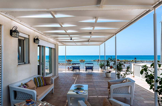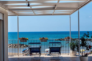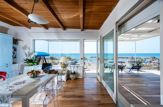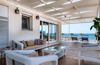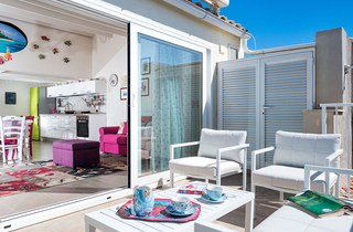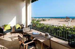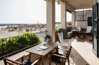 Die Apartments für jeweils vier Personen verfügen über einen direkten Zugang zum Strand und eine private Terrasse mit Meerblick. Auf der Rückseite der Villa gibt es auch eine grossee Terrasse, die von den Gästen geteilt wird und mit einer Aussenküche und einem Grill ausgestattet ist.