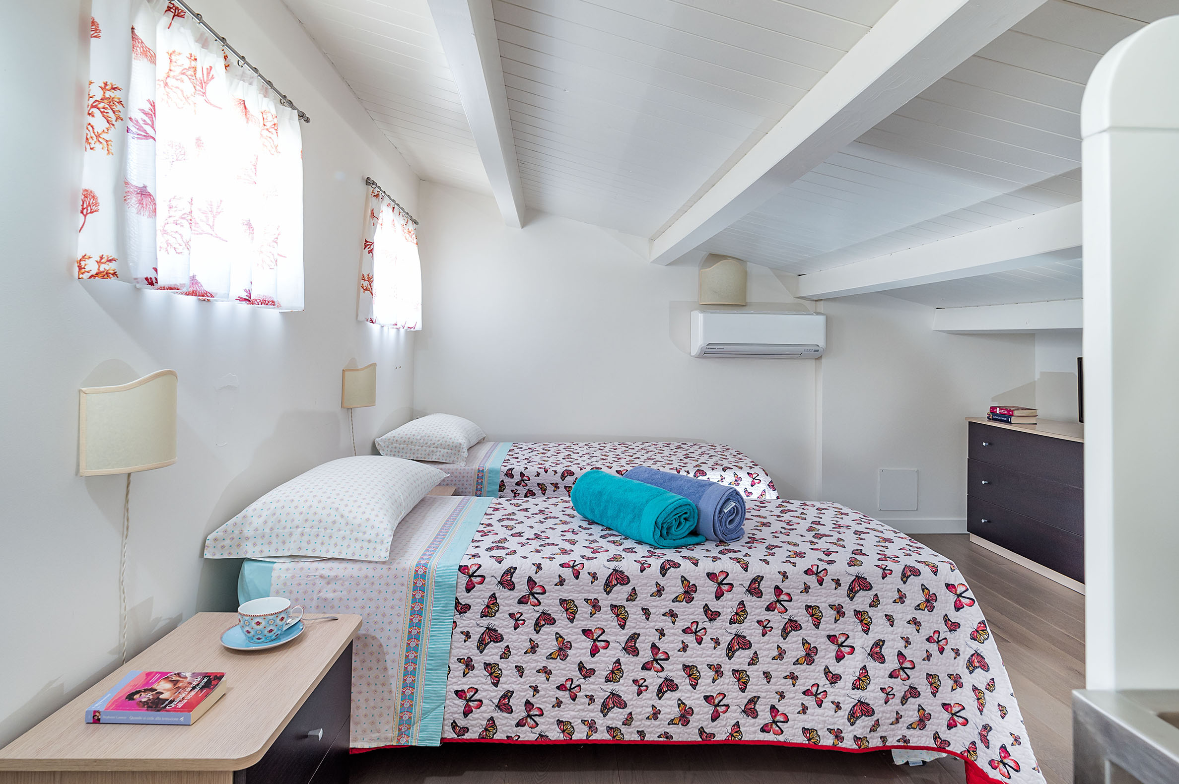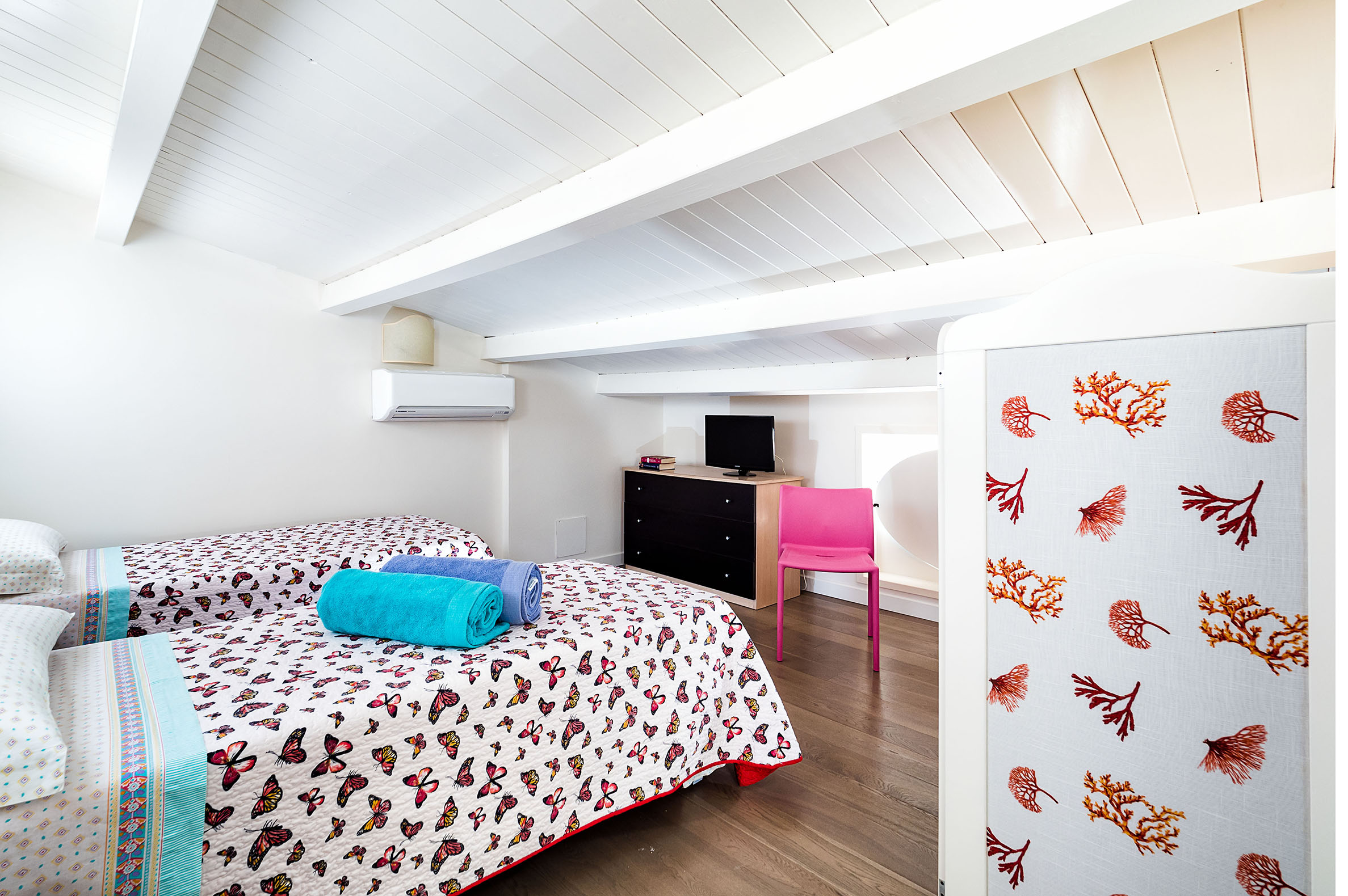 Die Donnalucata Suite ist ein hübsches Apartment im zweiten Stock, die sich über zwei Ebenen erstreckt. Es gibt ein gemütliches Wohn- / Esszimmer mit Küche, von dem aus Sie ein Doppelzimmer, ein Badezimmer und durch grosse Glastüren eine schöne kleine Terrasse erreichen. Vom Wohnzimmer führt eine Treppe zu einem niedrigen Dachgeschoss-Schlafzimmer mit Bad. Das Apartment verfügt über Klimaanlage, 3 TVs, WLAN, eine Waschmaschine und einen Geschirrspüler.
