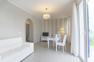 Junior Suite 60 m2 – 4 Pers. | 2 separate Schlafzimmer | Wohnzimmer | Balkon und seitl. Meersicht